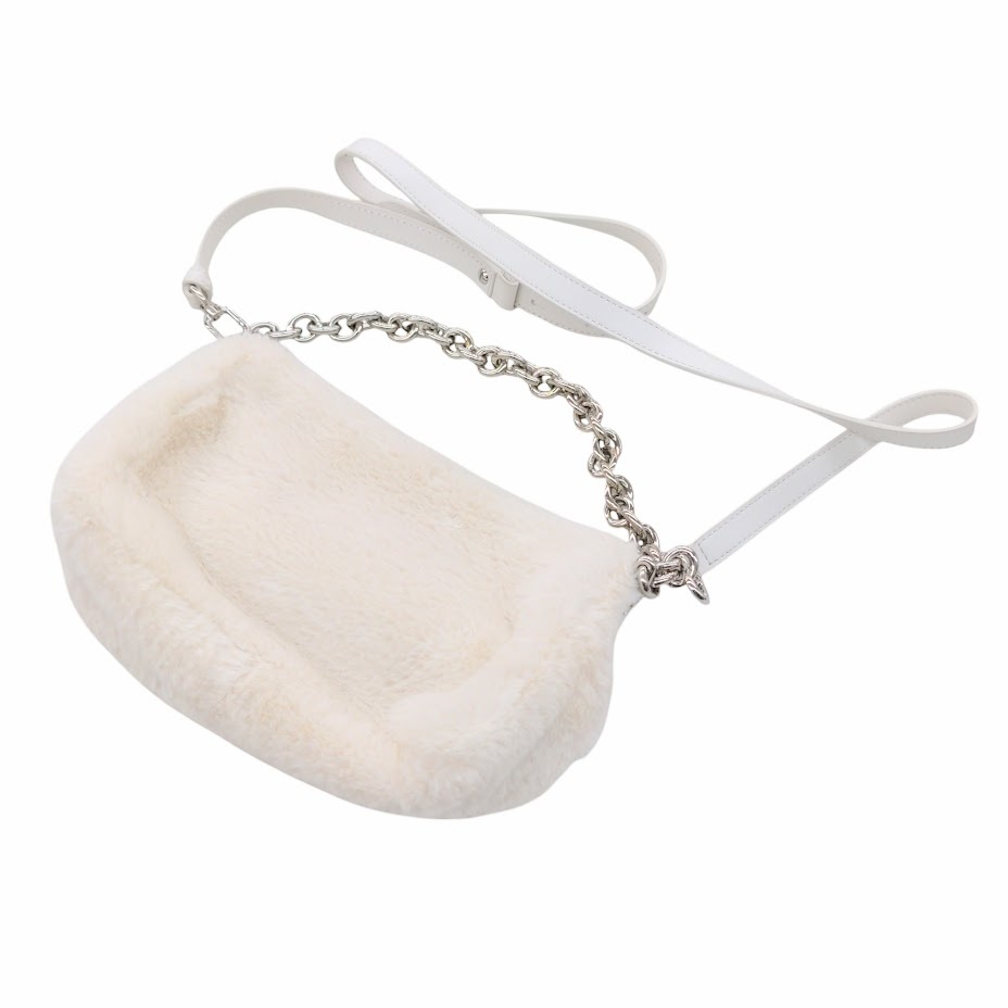 - FURLA フルラ ファーショルダーバッグ 2WAY ボア チェーン レザー ホワイト