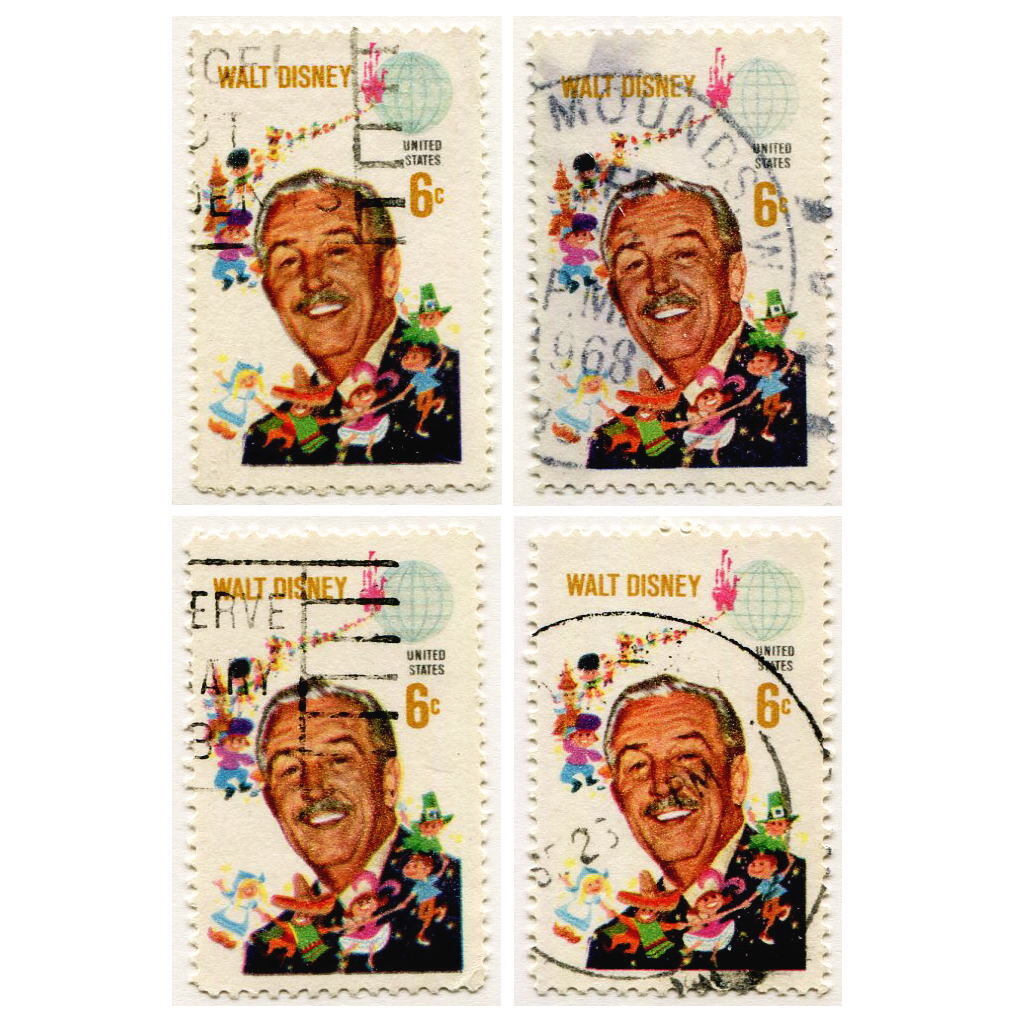 - ディズニー ウォルト・ディズニー 切手 使用済み4枚 発行国アメリカ 1968年発行 ディズニーの世界初の切手