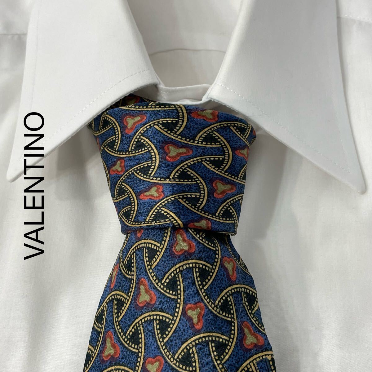 - VALENTINO ヴァレンティノ パターン柄 デザイン シルク ネクタイ ネイビー TG638