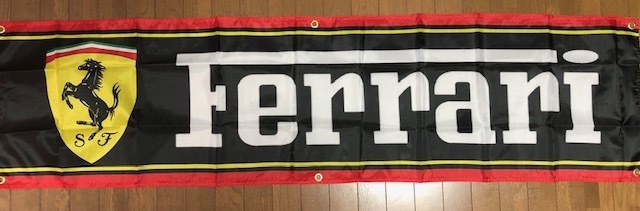 - 送料無料!お部屋に! フェラーリ FERRARIロゴ黒バナーフラッグ 旗 横長特大サイズ F40 F50 F12 スクーデリア 458 488 355 360