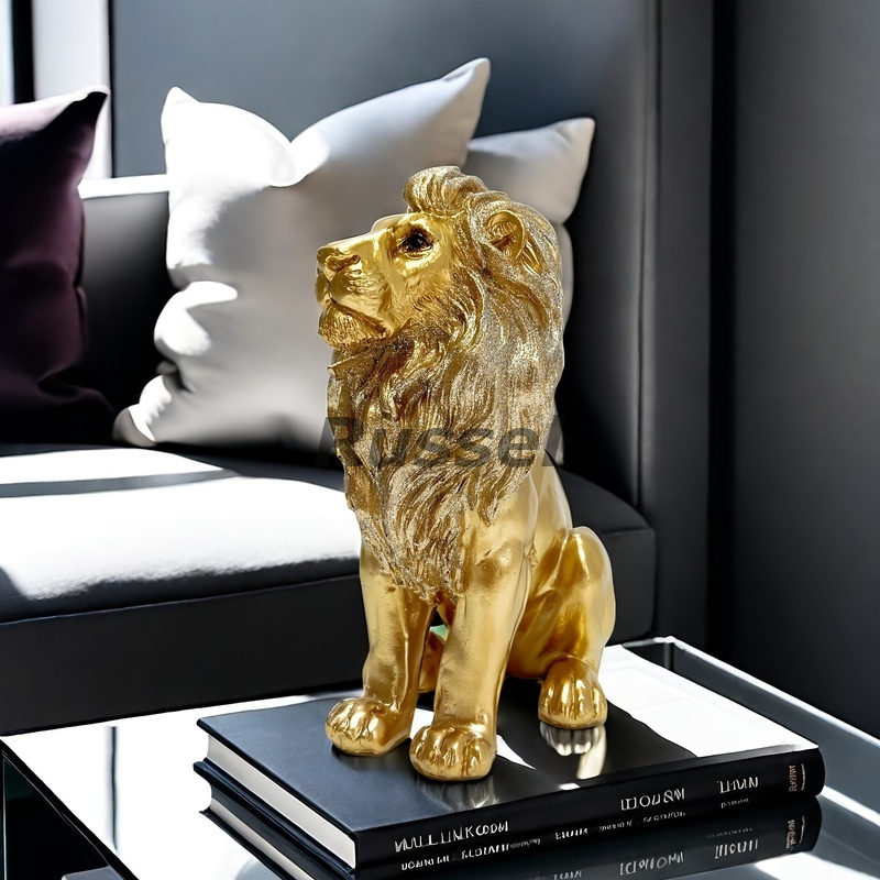 - オブジェ ライオン 動物 彫刻 置物 ライオン像 ミニサイズ 卓上 アニマルモチーフ ゴールド インテリア リビング ダイニング ホームデコ
