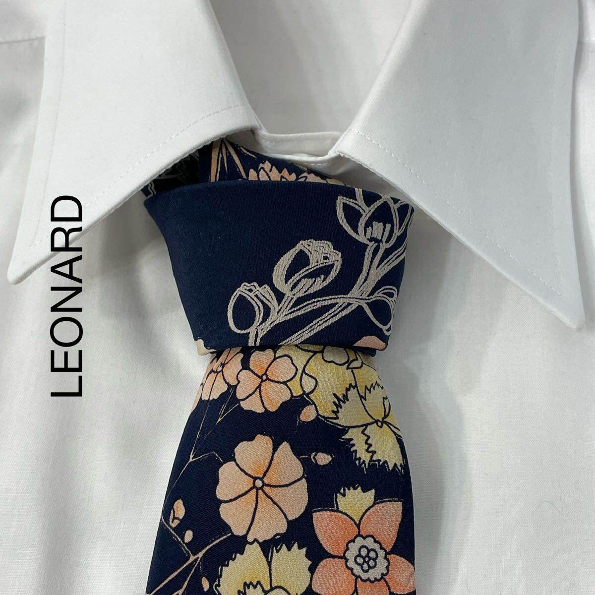 - LEONARD レオナール 花柄 デザイン シルク ネクタイ イタリア製 ネイビー TG658