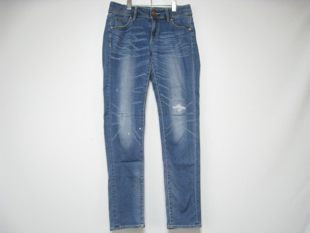 > CLOSSHI PREMIUM クロッシープレミアム しまむら ボトムス デニム ジーンズ ジーパン スキニー ダメージ加工 インディゴ ウエスト61