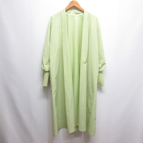 > シップス SHIPS 美品 リブ スリーブ ロング 羽織り コート 黄緑 グリーン 裏地付き レディース