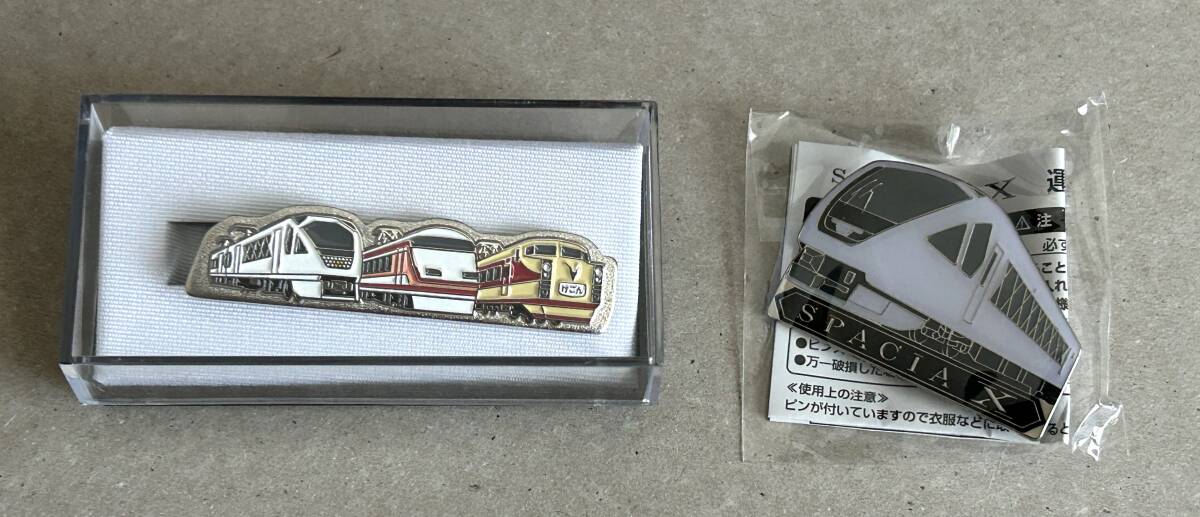 - 東武鉄道日光線歴代特急車両ネクタイピンとスペーシアXピンバッジ