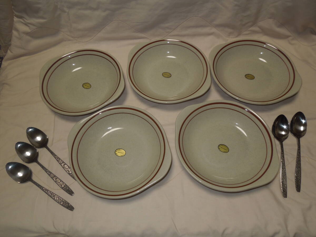- 高級ストンウエア グロリーチャイナ スープ皿&スプーンセット 5客