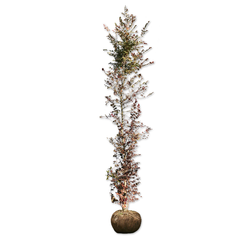 樹勢が強く大きな樹形になりますが、耐寒性は低く関東以北での成長は難しいです。葉は小さな単葉です。よく葉が茂るので生垣に使われます。花は赤花で細い花弁の小さな花が咲きます。花がとても咲く樹種で、4~5月の開花時期は樹木全体が花で覆われとても綺麗です。