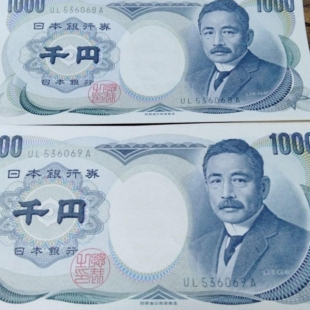 - 夏目漱石 1000円 千円札 財務省 新札 新券 ピン札 連番 2枚セット 日本銀行券 D号券