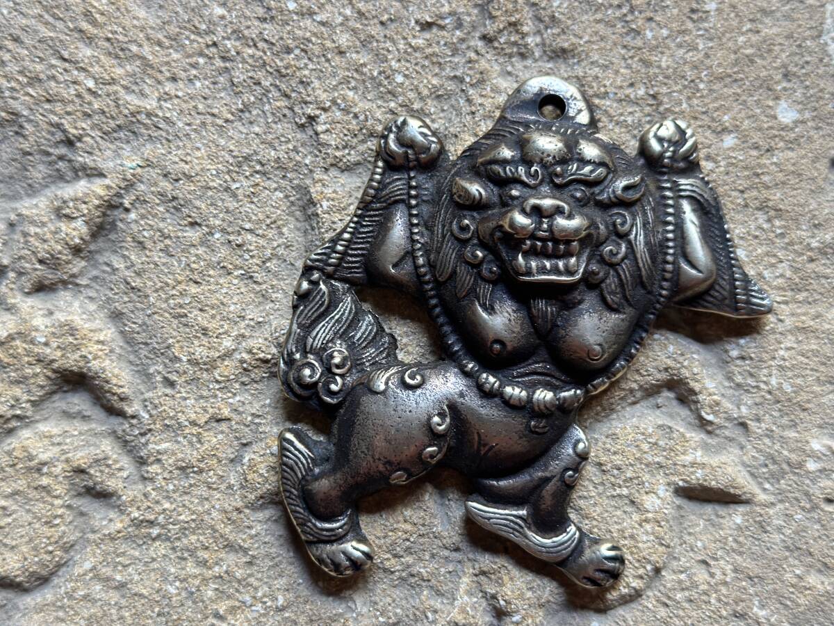 - 根付け アンティーク ヴィンテージ 雪獅子 スノーライオン チベット ネパール 真鍮製 骨董 古美術 東洋美術