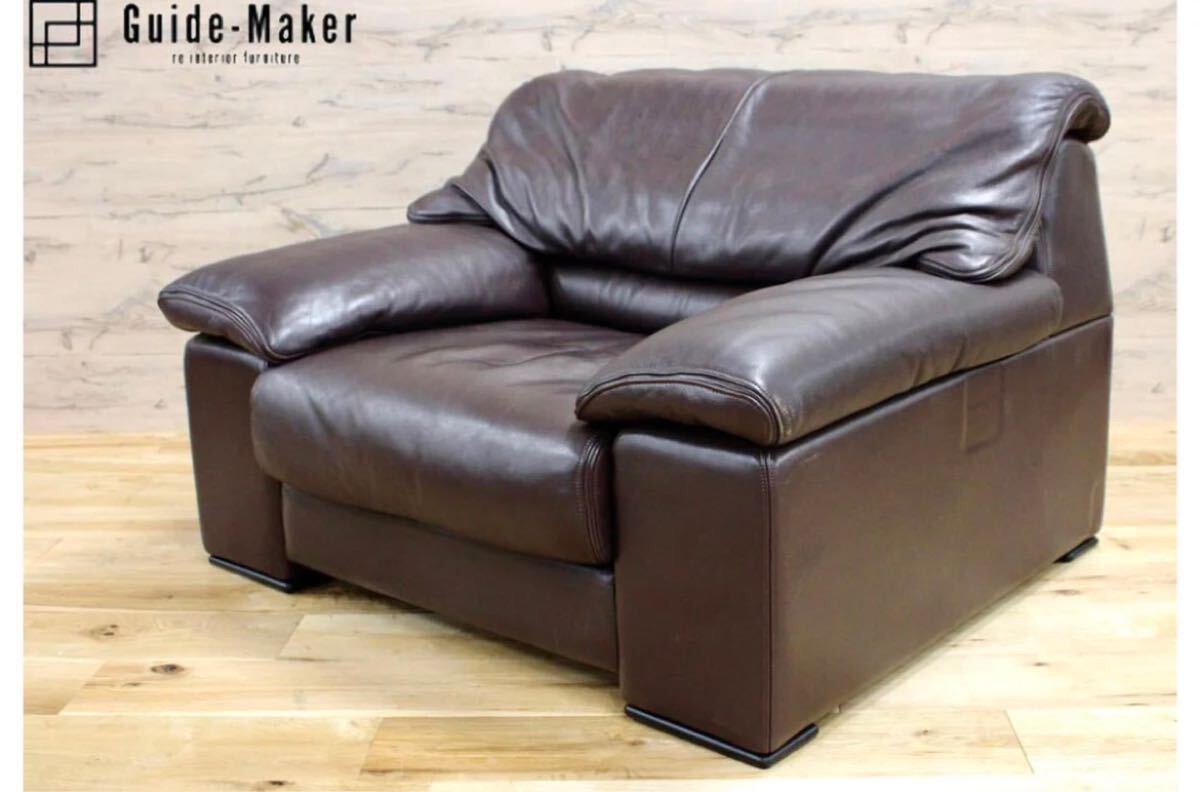 > GMFN10F○karimoku / カリモク 1人掛けソファ シングルソファ 総本革 定価約27万 応接 肘掛け椅子 高級 家具 モダン 廃番