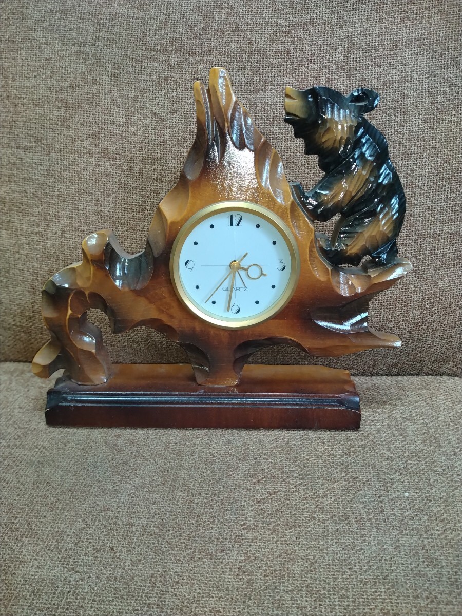 - K705 北海道土産 木製 置時計 非連続秒針 動作品
