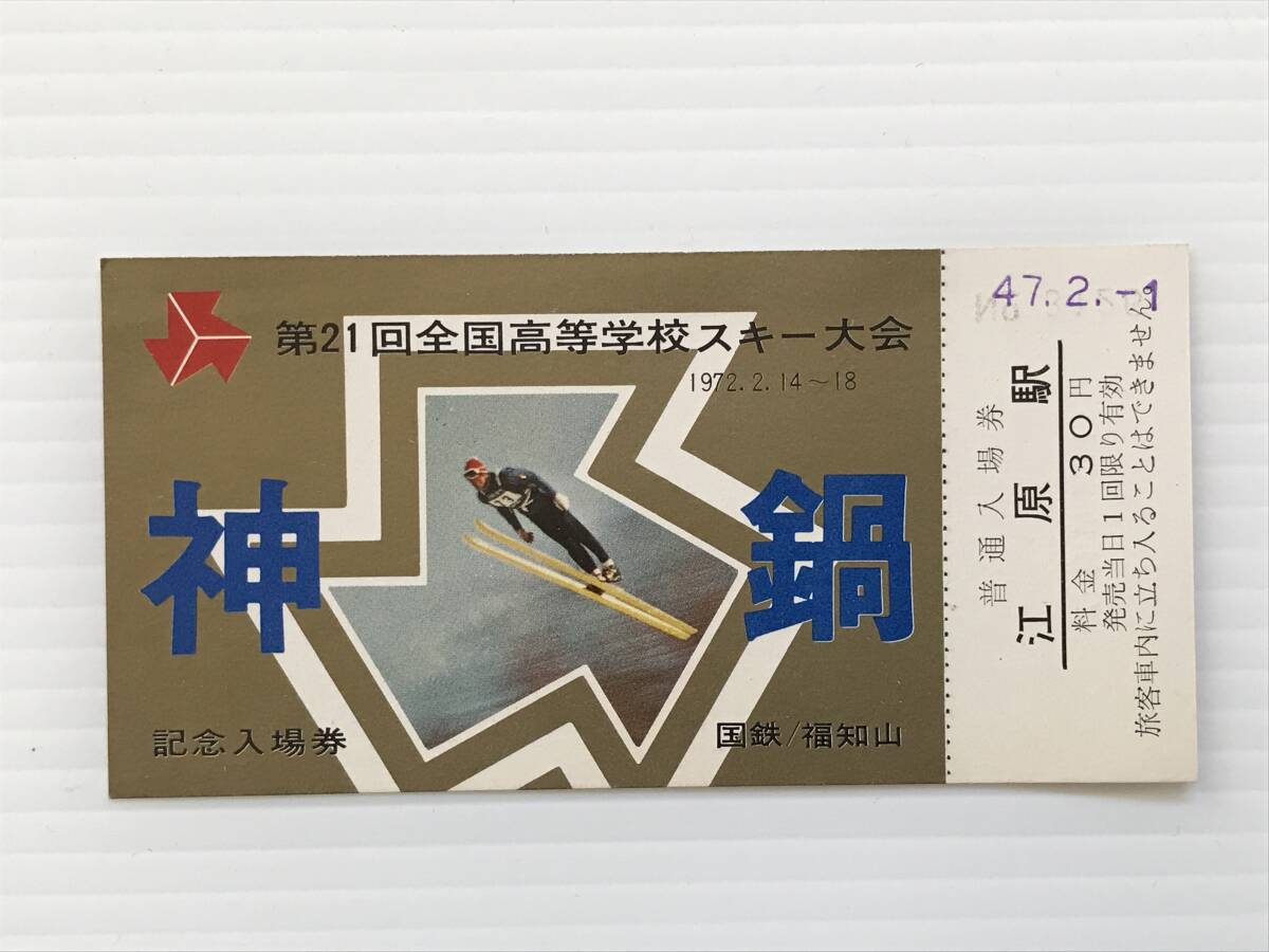 - 昔の切符 記念切符 第21回全国高等学校スキー大会 記念入場券 1972年 普通入場券 江原駅 国鉄/福知山 HF6397 くるり岸田繁