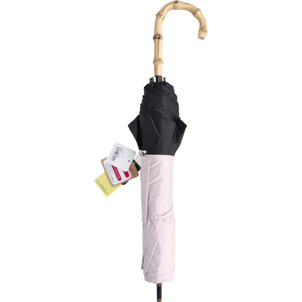 - 晴雨兼用ショートワイド傘 竹手元 裏黒コーティング 無地切継 ピンク