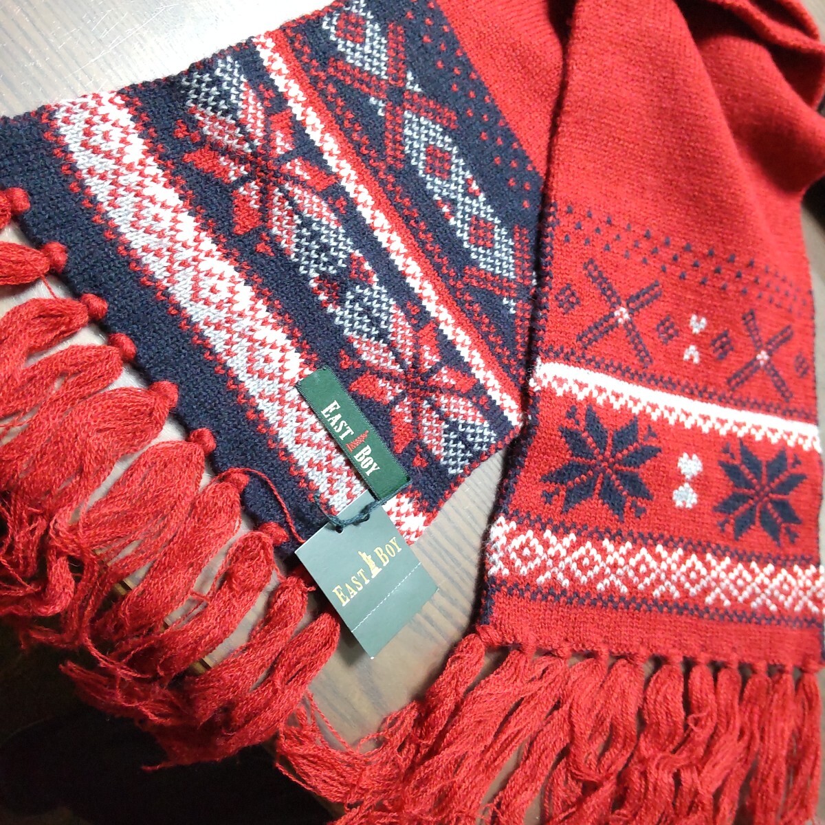 - 新品◆イーストボーイ/EASTBOY◆雪柄マフラー◆レッド◆3190円