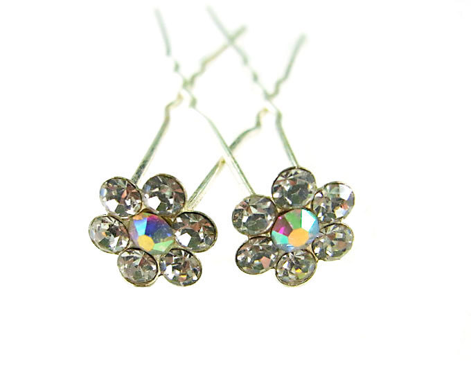 - ヘアアクセサリー Uピン 2本セット かんざし簪 フラワー 着物 和服 浴衣 ラインストーン クリア ヘアアレンジ レディース mimosa