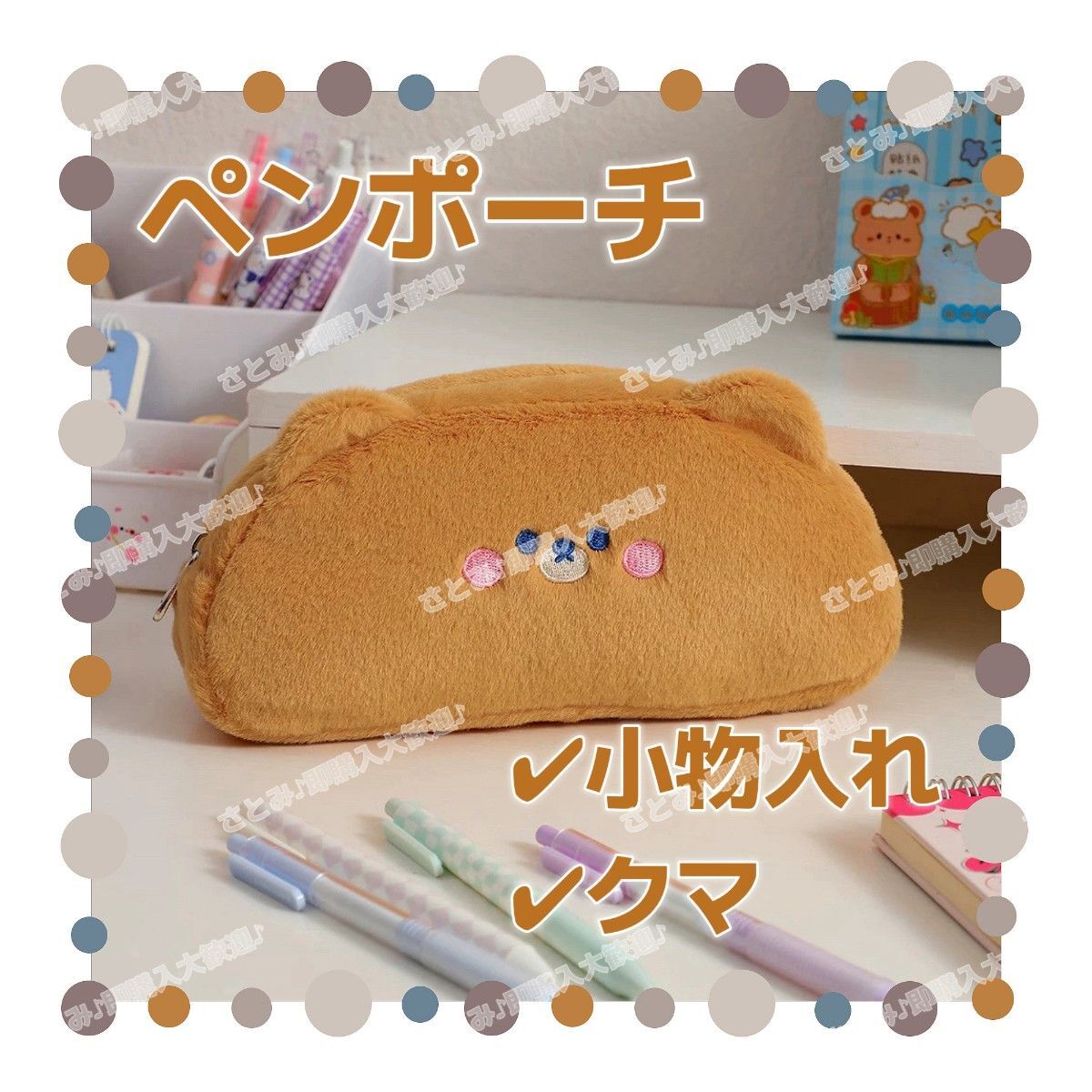 - アニマル ペンポーチ メイクポーチ 小物入れ 大容量 ふわふわ 可愛い クマ ブラウン