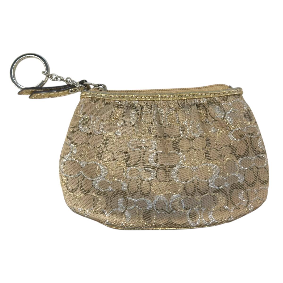 > COACH コーチ コインケース 小物入れ 小銭入れ ベージュ ラメ シグネチャー キャンバス レディース 【中古】