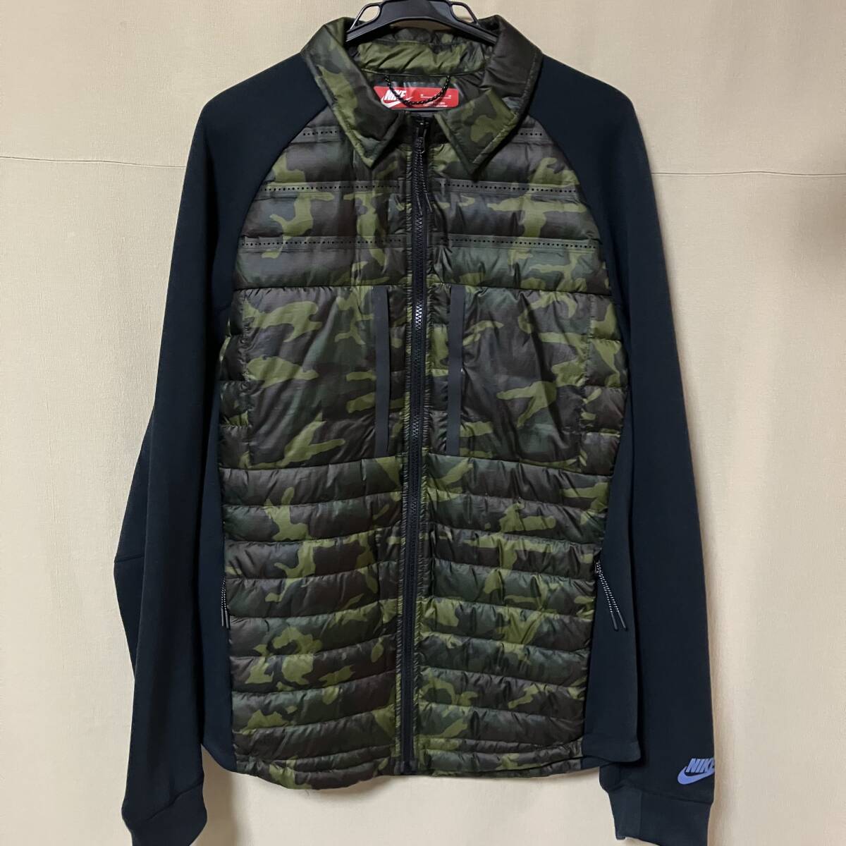 > 良品 NIKE Mサイズ ナイキ テックフリース エアロロフト ダウン シャツ ジャケット フェザー 迷彩 カモフラ ブラック メンズ TECH AEROLOFT