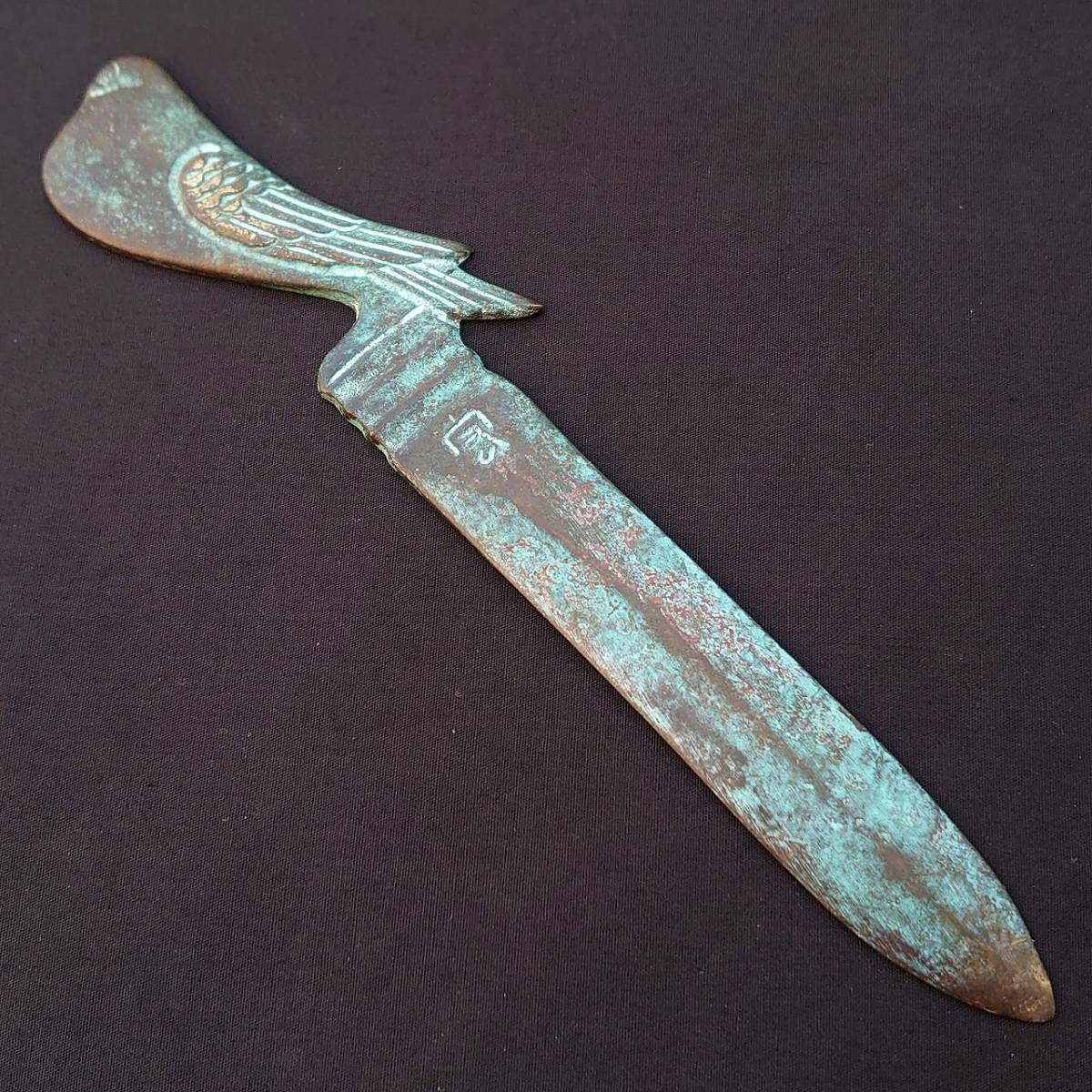 - 真鍮製 ペーパーナイフ 鳥型の柄 全長約190㎜ 紙ナイフ レターオープナー 古物 骨董 昭和レトロ 【S1783】