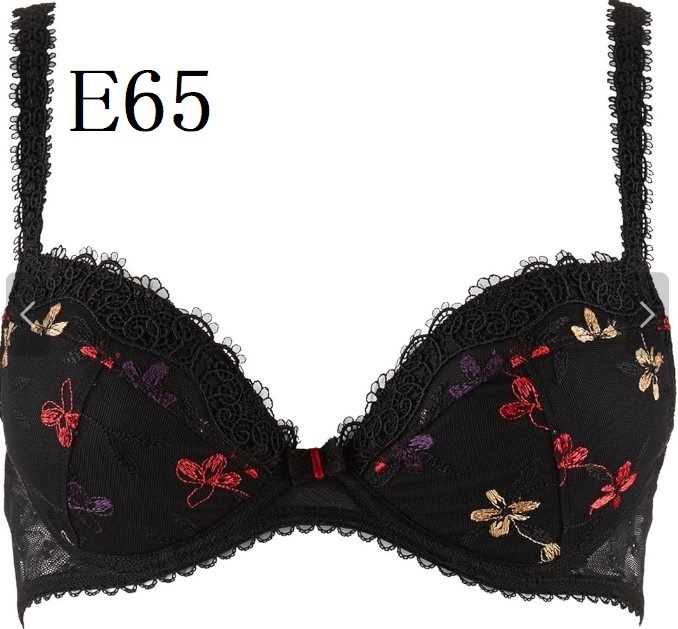 - E65☆オーバドゥAubade フランス海外下着 プッシュアップブラ 黒