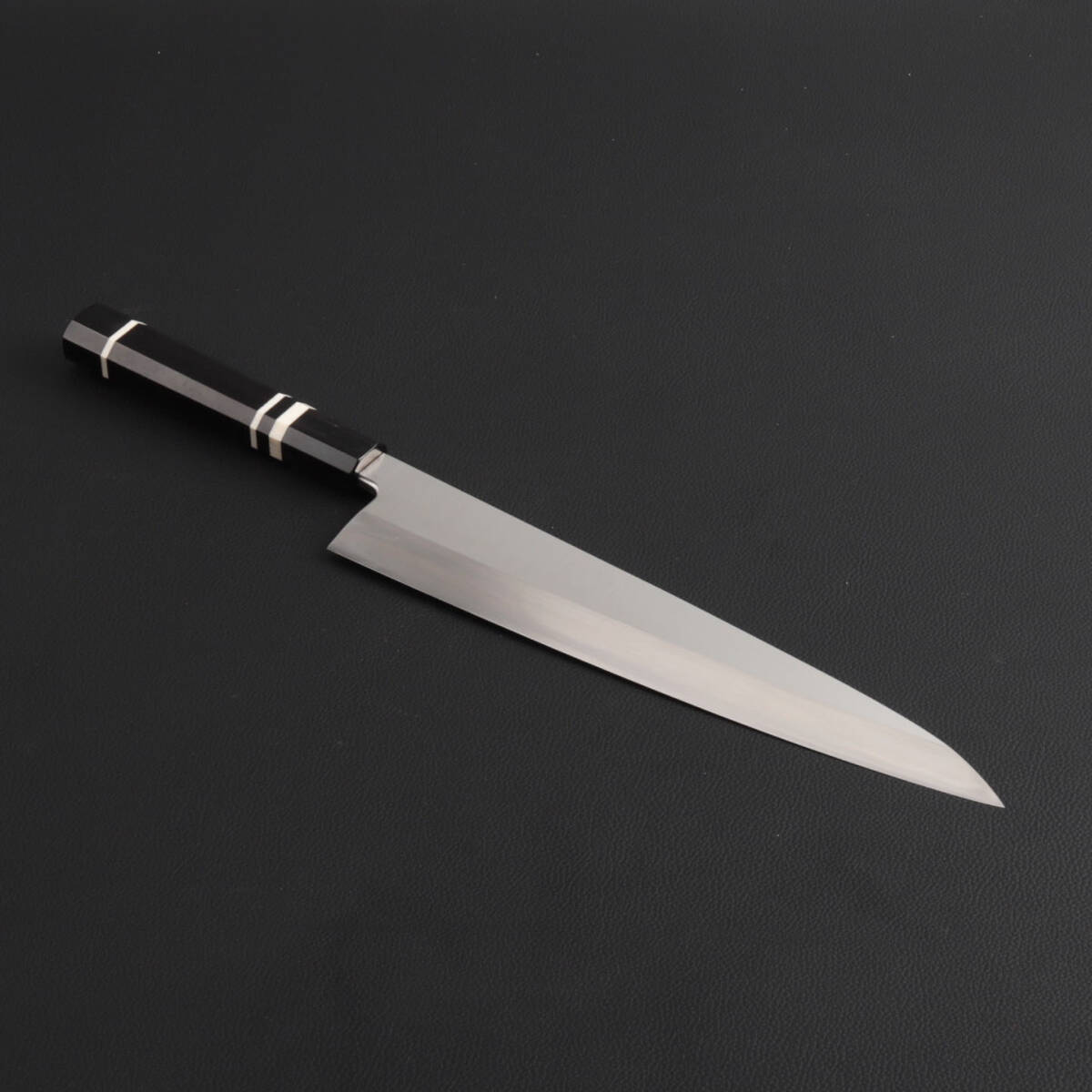 - 8911 激レア 身卸し・舟行 9寸 刺身包丁 刃は究極の切れ味 真空焼き入れサブゼロ処理 和包丁 出刃包丁 黒檀両端黒水牛角白三本巻八角柄