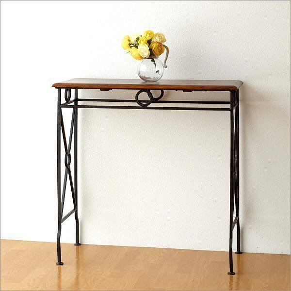 - コンソールテーブル 玄関 アイアン 木製 花台 花瓶台 アンティーク アジアン ネストテーブル コンソールL 送料無料(一部地域除く) kan8483