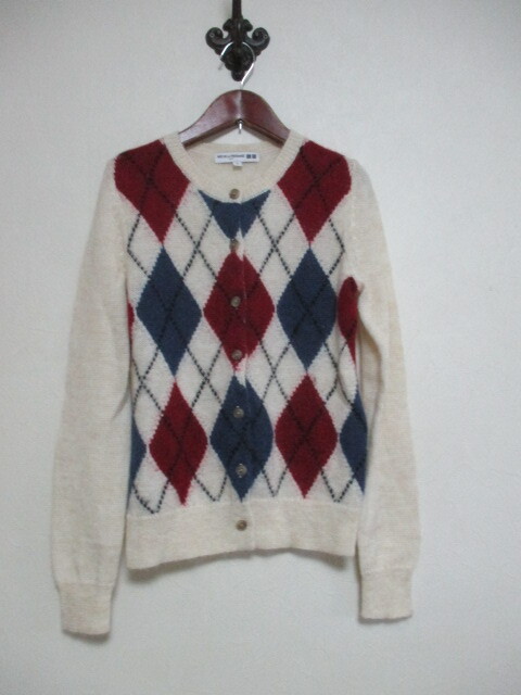 - ユニクロ×イネス コラボ 白地アーガイル柄カーディガン(USED)121424