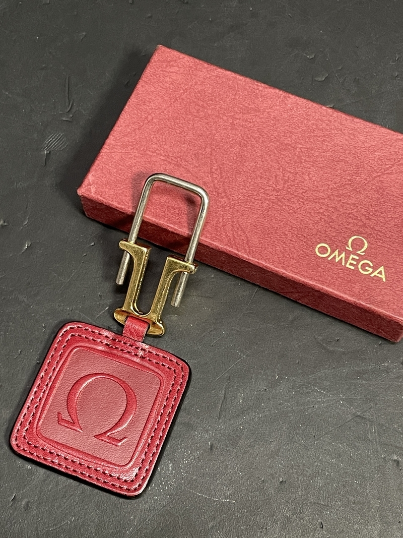 > ● コレクター必見 OMEGA オメガ キーホルダー レザー 革 ボルドー系 ゴールド シルバー 金具 キーリング チャーム 元箱 YK830