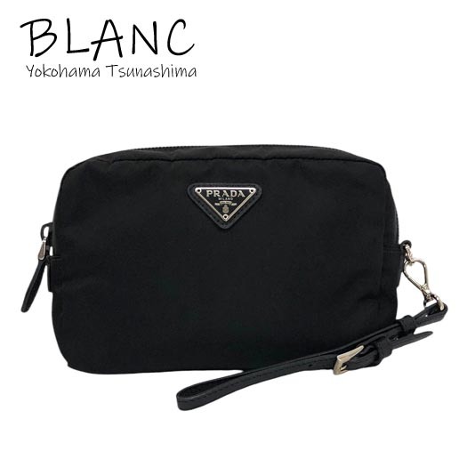 - プラダ リストレットポーチ トライアングルロゴ ナイロン ブラック シルバー金具 黒 1NE021 PRADA 横浜BLANC