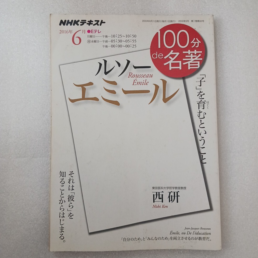 > ルソー エミール 「子」を育むということ (NHKテキスト 100分de名著 2016年6月) 西研/著 NHK出版/編集