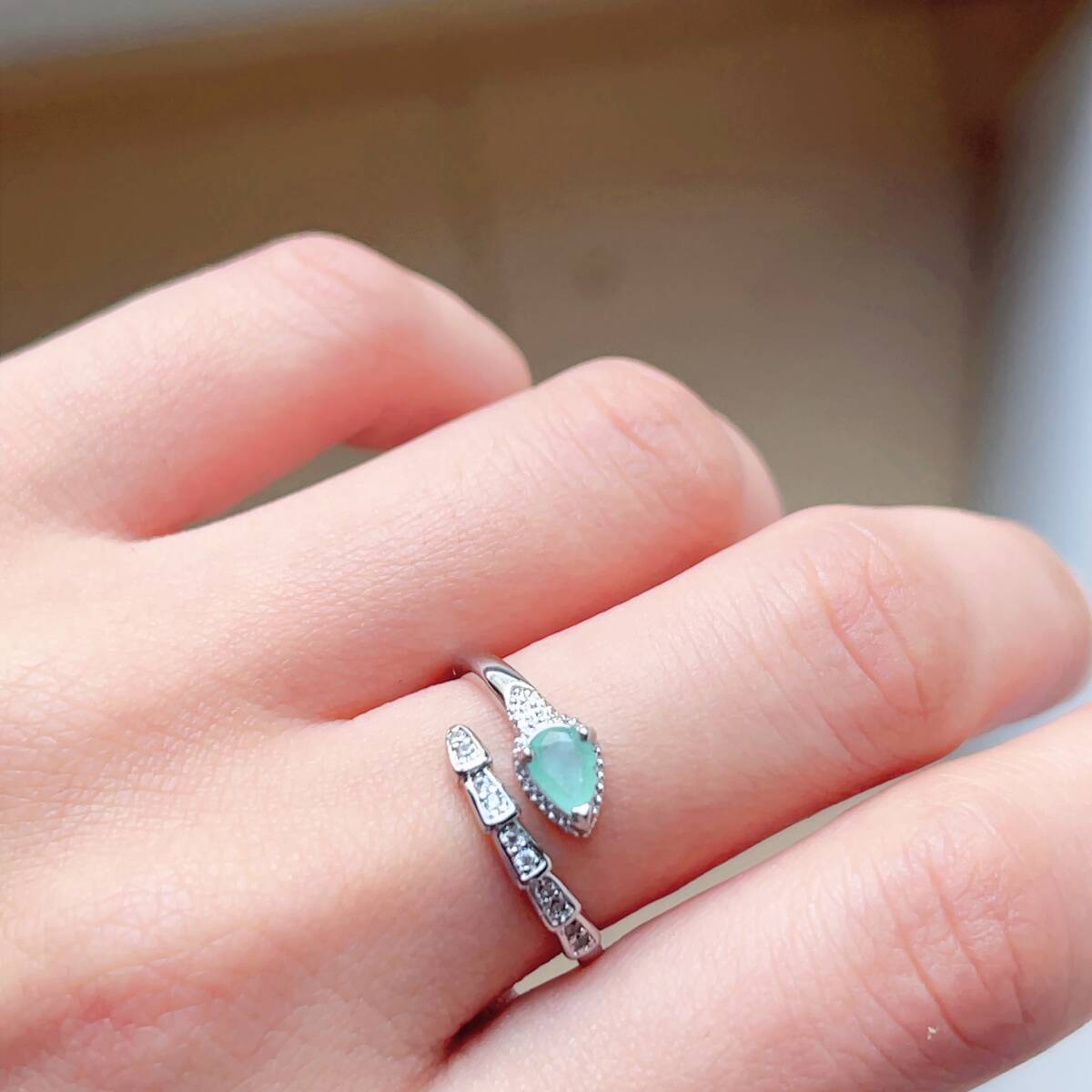 - ◇エメラルド(緑柱石)◇指輪◇リング◇フリーサイズ◇天然石◇パワーストーン◇巾着袋付◇プレゼントにも 034R12229