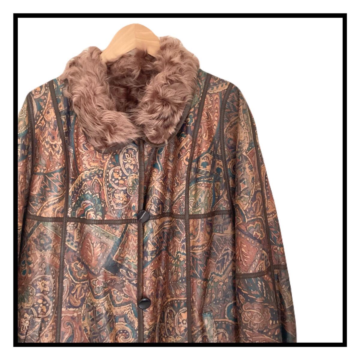 - VINTAGE ファーコート フェイクレザー レトロ柄 ブラウン ユニセックス