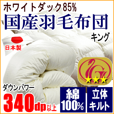 - 羽毛布団 キング ホワイトダック 85% ダウン ニューゴールドラベル 340dp以上 超長綿 綿100% 日本製
