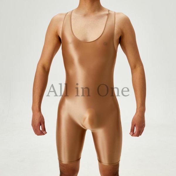 > 135-131-26 光沢 ツヤツヤ メンズ レスリング ボディスーツ【ブラウン,Lサイズ】男性 コスプレ コスチューム イベント ジャンプスーツ .1