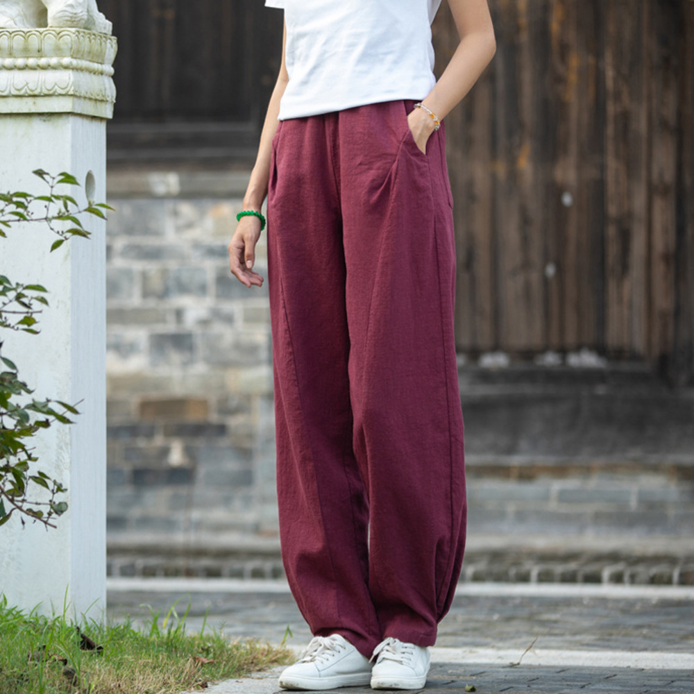 - ☆ ワインレッド ☆ S ☆ 着痩せバルーンパンツ コットンリネン バルーンパンツ レディース コットン メンズ イージーパンツ