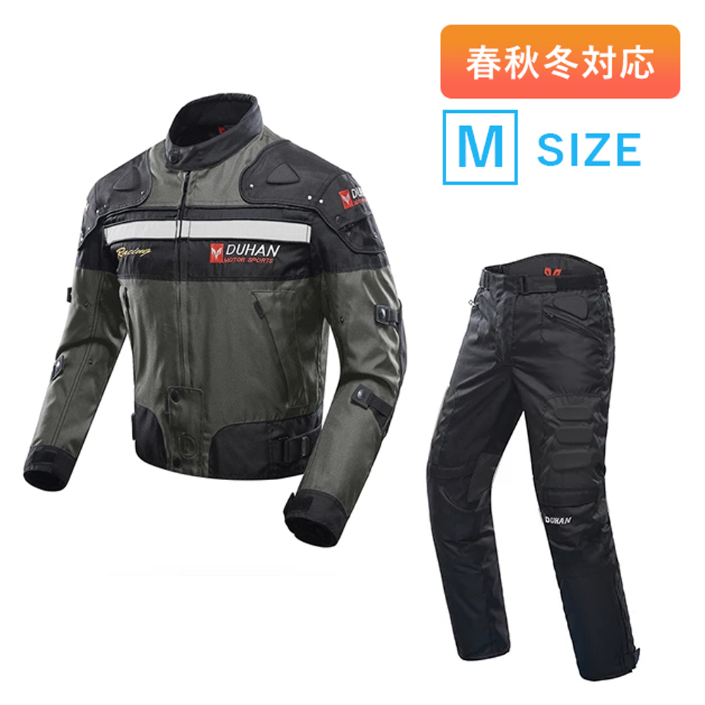 - DUHAN モーターサイクル ジャケット&パンツセット ダークグリーン M 3シーズン ドゥーハン プロテクター インナーパッド 着脱式 春秋冬