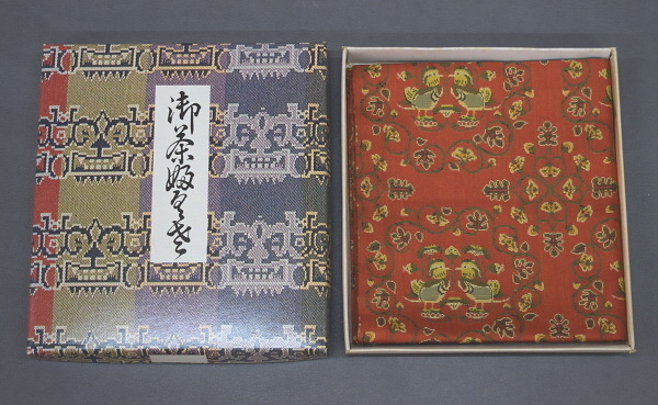 - A27-25【凛々】即決 中古品 正絹 帛紗 龍村美術織物 朱地 鴛鴦唐草文錦(ゆうパケット260円)