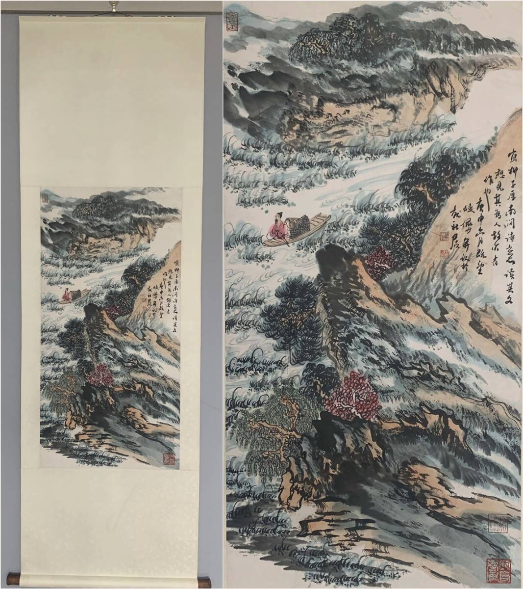 - 古美術 掛け軸 中国・近現代 「陸厳少書」 紙本 【山水図】 立軸 書道 巻き物 肉筆保証 唐物 古画 画心98×49cm LT-2412186
