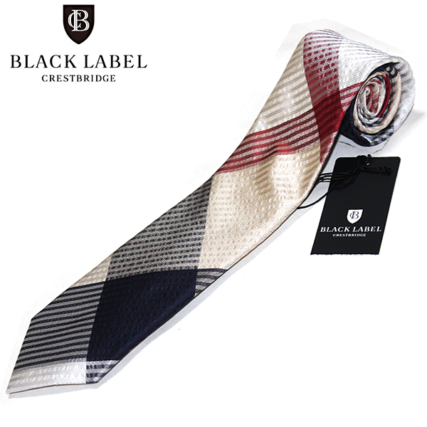 > 送料185円★新品 BLACK LABEL CRESTBRIDGE 日本製シルク100%のシアサッカーCBチェック ネクタイ 337-41ブラックレーベル クレストブリッジ