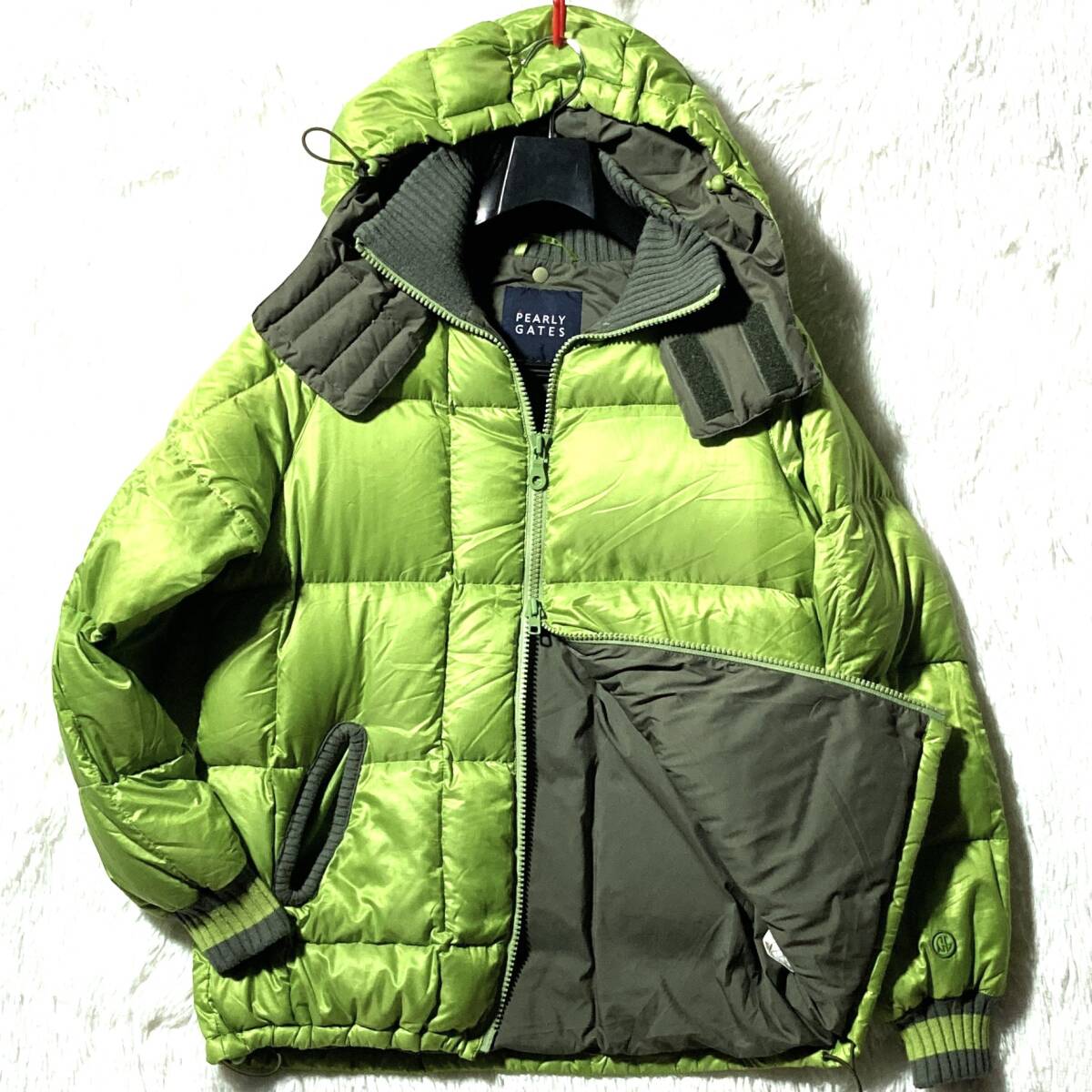 > パーリーゲイツ★軽量&肉厚★ダウンジャケット 着脱フード ふかふか防寒性抜群 蛍光グリーン 1 ユニセックス 快適ラウンド おしゃれ着にも