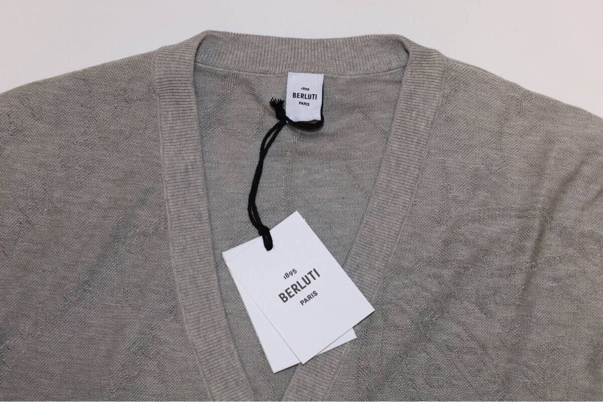 - 新品 ベルルッティ フルカリグラフィー カーディガン ライトグレー S セーター スクリット 定価16万円 コットンシルク