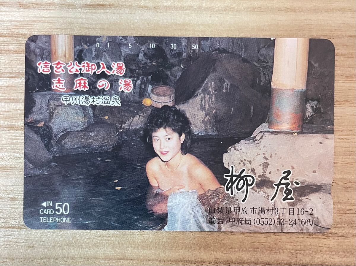 - 未使用 コレクション品 信玄公御入湯 志麻の湯 甲州湯村温泉 入浴 女性 モデル テレホンカード テレフォンカード テレカ 50度