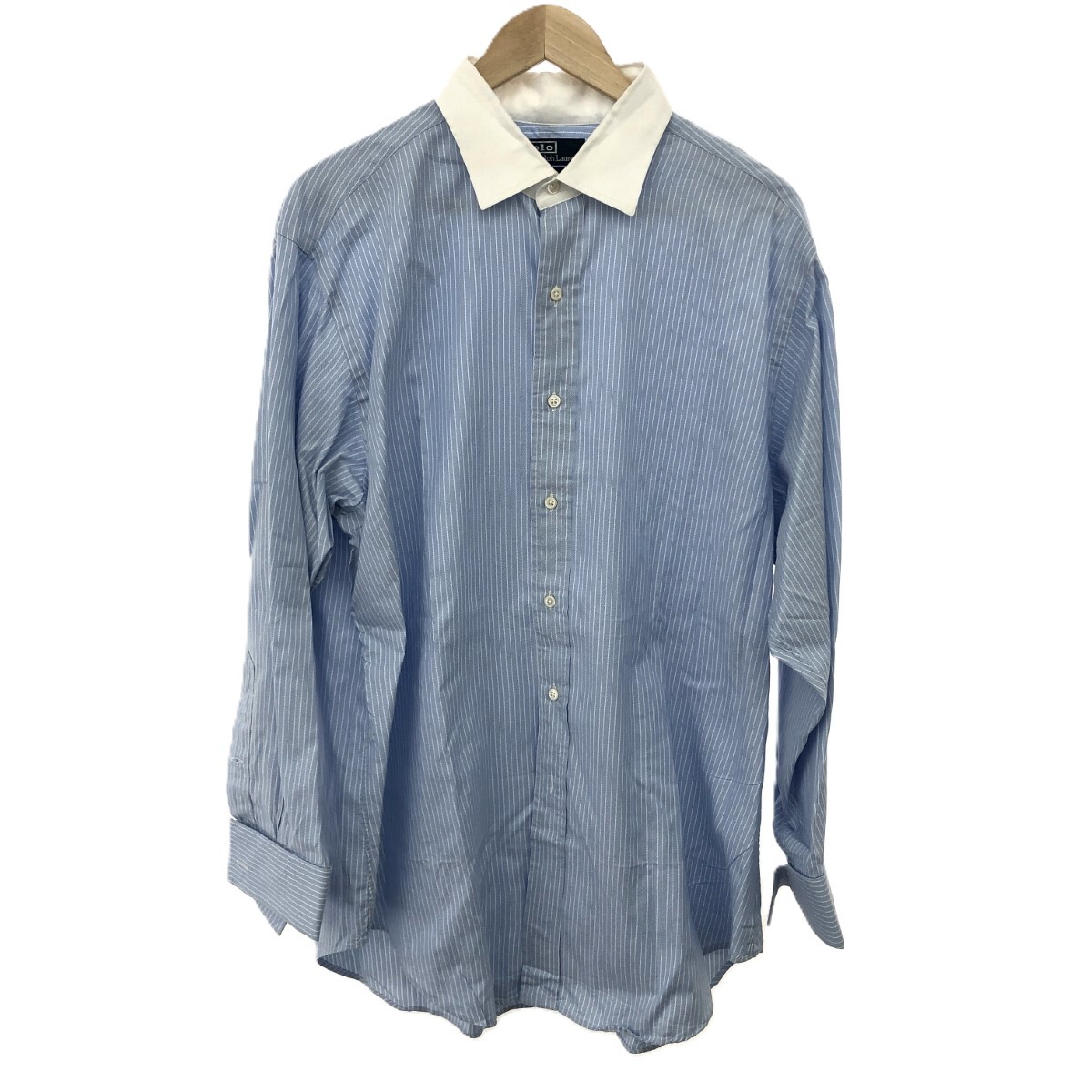 > ◆POLO RALPH LAUREN ポロラルフローレン ストライプ 長袖クレリック シャツ サイズ:42-84◆ ブルー メンズ ダブルカフス トップス
