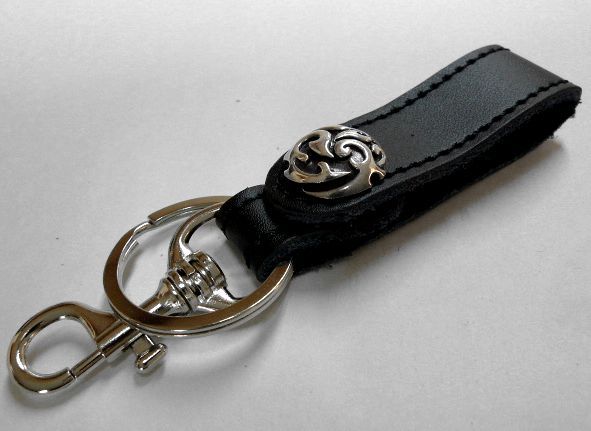 - 牛革ベルトループ キーホルダー 黒/silver925コンチョ付(トライバル柄ボタン)