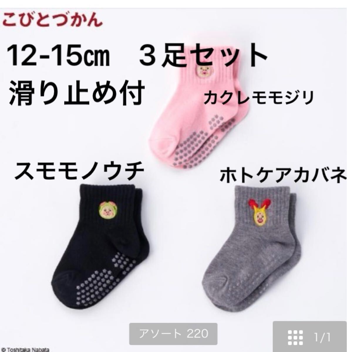 - 新品即決送料無料♪こびとづかん カクレモモジリホトケアカバネスモモノウチ刺繍ソックス12-15㎝3足セット滑り止め付