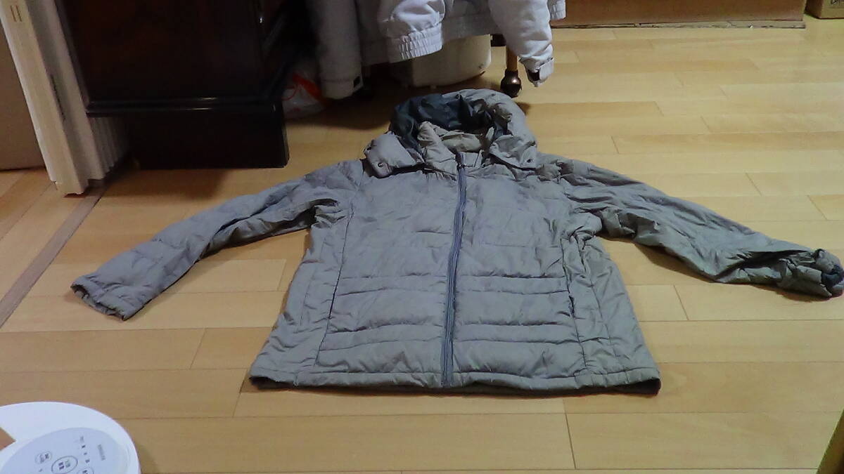 - 即決 灰色 FIRST DOWN ジャンパー ジャケット 古着 LL 状態 低 ダウン きばみ フード付き 使用感あり やぶれあり 紳士用