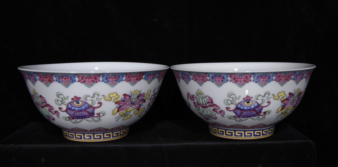 - ◆旧家蔵出◆古美術 中国古玩 大清雍正年製款 粉彩 八寶碗―對 置物 擺件 古賞物 擺件 骨董 時代物 A06