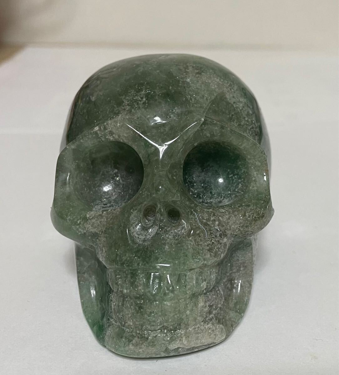 - ストロベリークォーツ スカル いちごクォーツ 009 髑髏 天然石 クリスタル 水晶 魔除 お守 幸運 置物インテリア 開運 緑 原石 縁起物