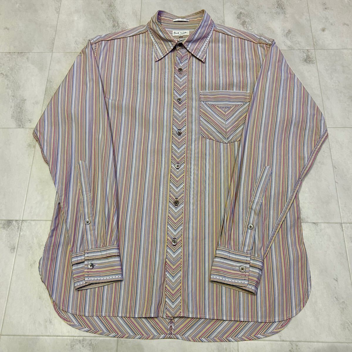 > 希少 90s Paul Smith LONDON ポールスミス マルチカラー ストライプ ヘリンボーン 刺繍 長袖シャツ IMPORTED FABRIC FROM ITALY
