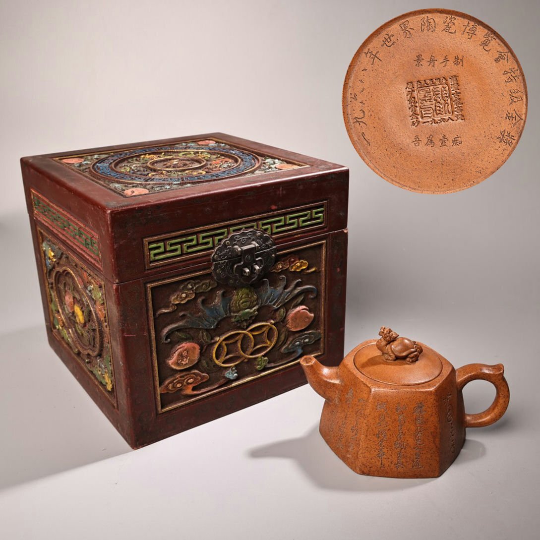 > ▼渡鶴羽▼P068時代朱泥 顧景舟 紫砂壺 在銘 /紫砂 煎茶道具 朱泥 茶壺